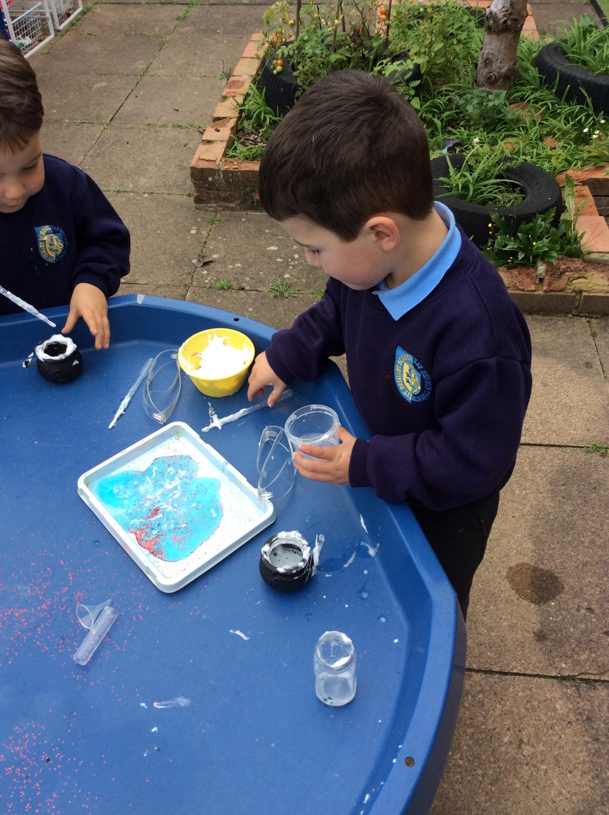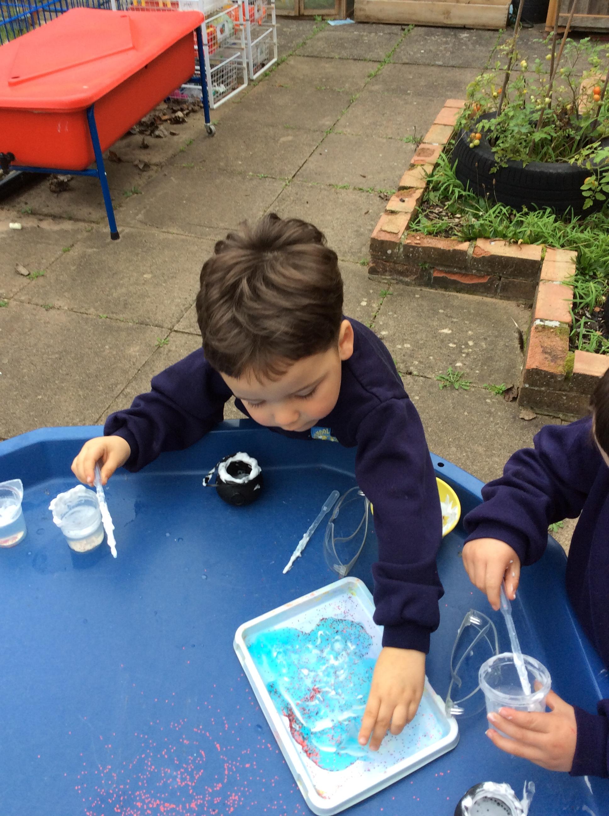 Mixing our own potions for Halloween,